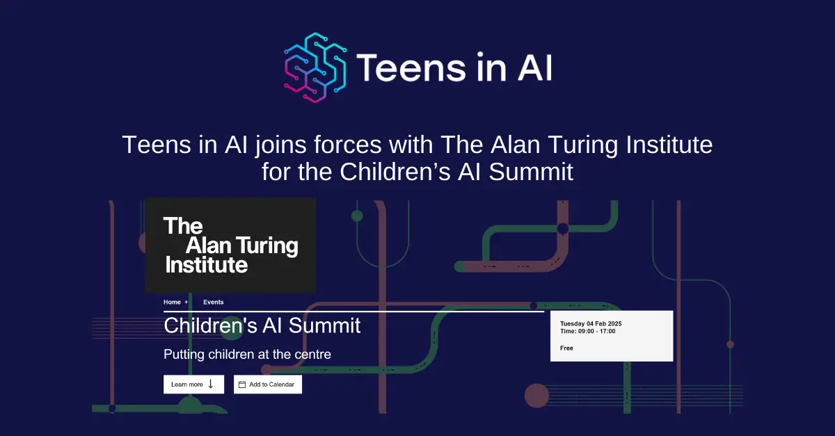 Event Teens in AI joins forces with The Alan Turing Institute for the Children’s AI Summit Teens in AI is proud to collaborate with The Alan Turing Institute for the Children’s AI Summit, a landmark event amplifying young voices in discussions February 4, 2025 No Comments