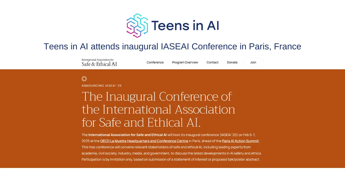 Event Elena Sinel to Attend official AI Action Summit fringe IASEAI Conference in Paris: Advancing AI Education for the Next Generation Teens in AI’s Elena Sinel attending official fringe event of the AI Action Summit, the inaugural IASEAI Conference in Paris on 6 and 7 February February 6, 2025 No Comments
