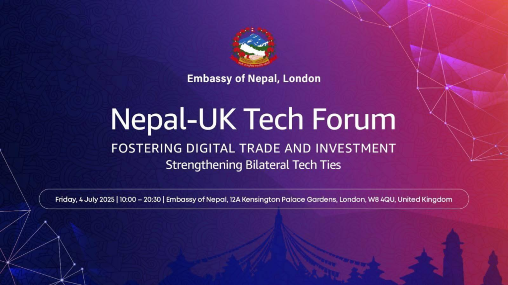 The Embassy of Nepal in London will host the Nepal-UK Tech Forum, a landmark event aimed at deepening digital and investment ties between the United Kingdom and Nepal. Bringing together senior diplomats, policymakers, investors, business leaders, and technologists, the forum seeks to position Nepal as a rising digital economy and innovation hub.