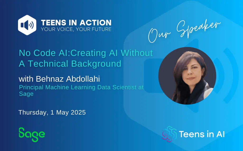 Join Teens in AI and Sage, powered by Sage Foundation, with Behnaz Abdollahi for an engaging session on No Code AI.