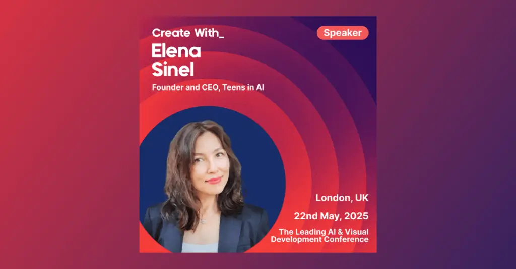 Join Teens in AI’s Elena Sinel for the Create With Conference, the UK’s leading AI and NoCode conference, on May 22nd, 2025, at Plexal in the vibrant heart of London’s Here East tech hub.